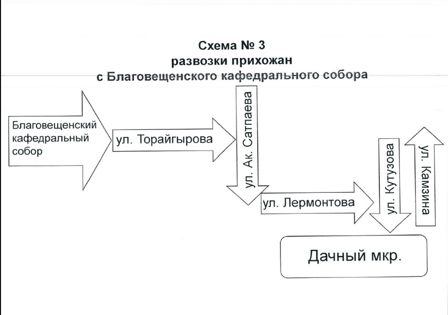 Отвечая на вопросы журналистов, протоиерей Алексий рассказал о порядке проведения пасхальных торжеств в приходах Павлодарской епархии и областного центра и о том, как будет организована развозка прихожан павлодарских храмов после окончания ночного богослужения. В этом году для развозки прихожан будут задействованы микроавтобусы вместимостью 18-20 пассажирских мест, которые будут передвигаться по маршрутам, утвержденным Павлодарским благочинием и ГУ «Отдел ЖКХ, пассажирского транспорта и автомобильных дорог акимата города Павлодара» (см. фото).